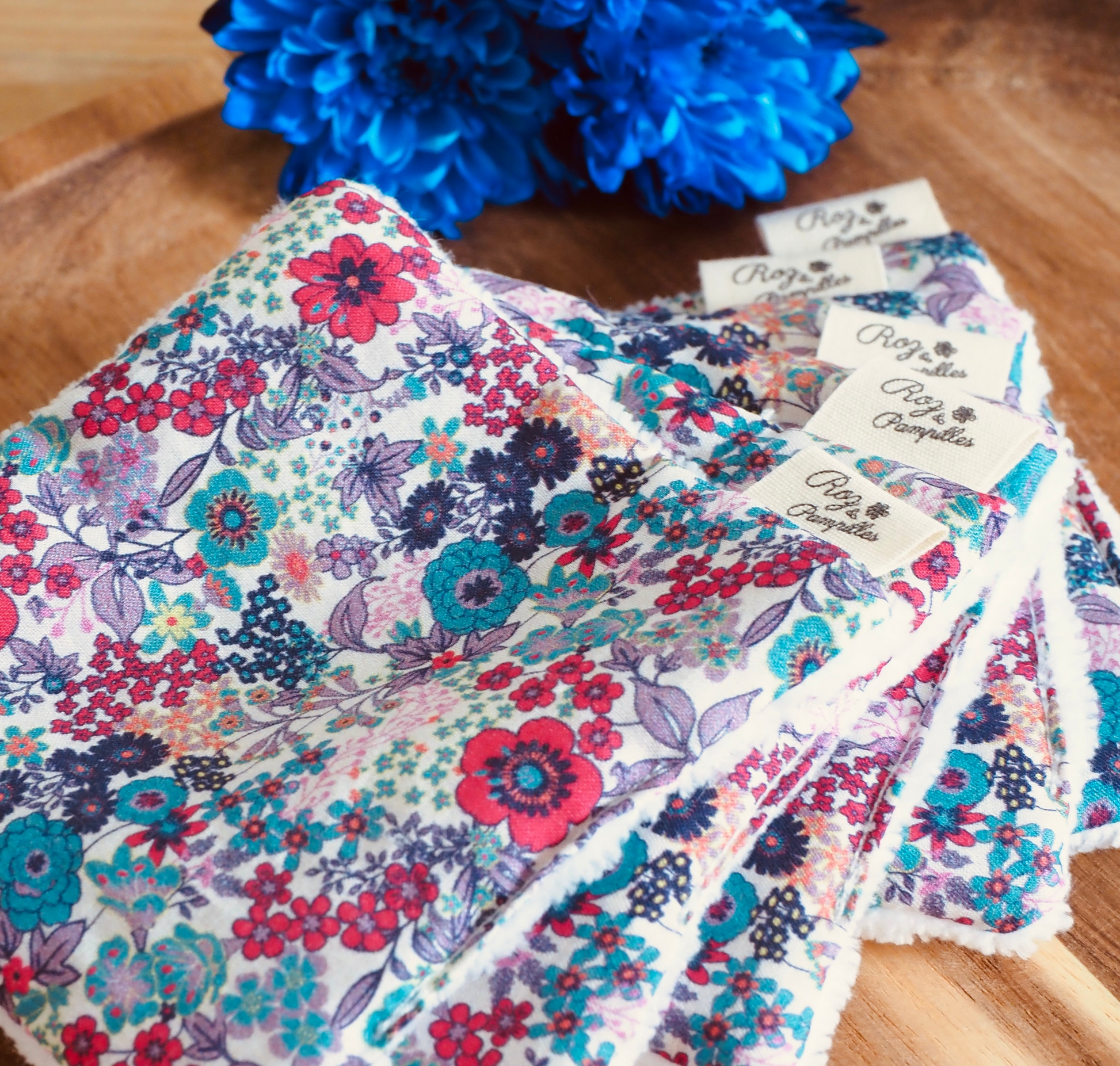 Offrez à votre peau un moment de tendresse avec ces carrés de coton lavables. Une création artisanale mêlant éponge bambou moelleuse et jolis imprimés fleuris.