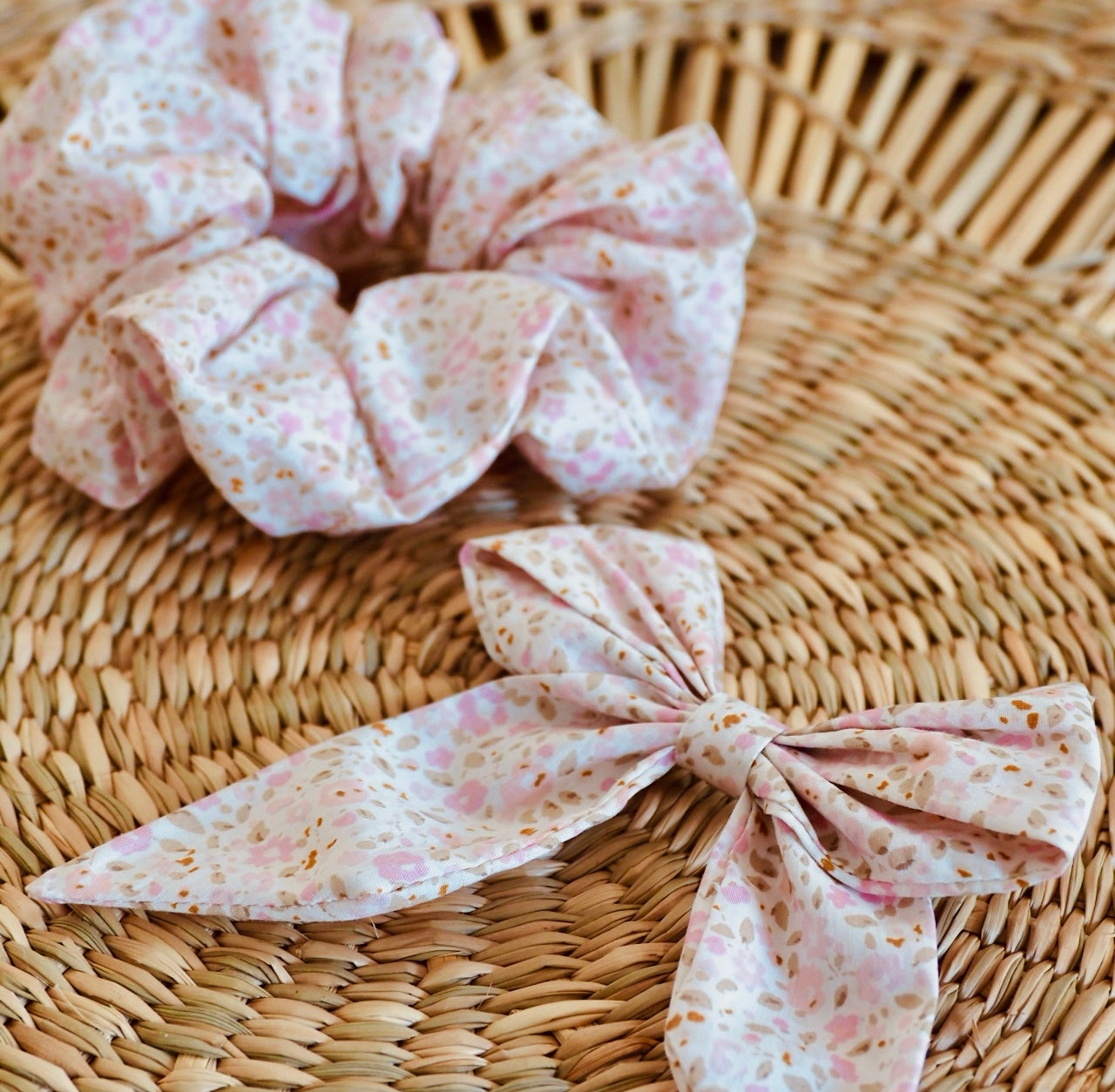 Un chouchou en tissu fleuri qui respire la légèreté et la nature. Portez-le dans les cheveux ou au poignet pour un style bohème et lumineux.