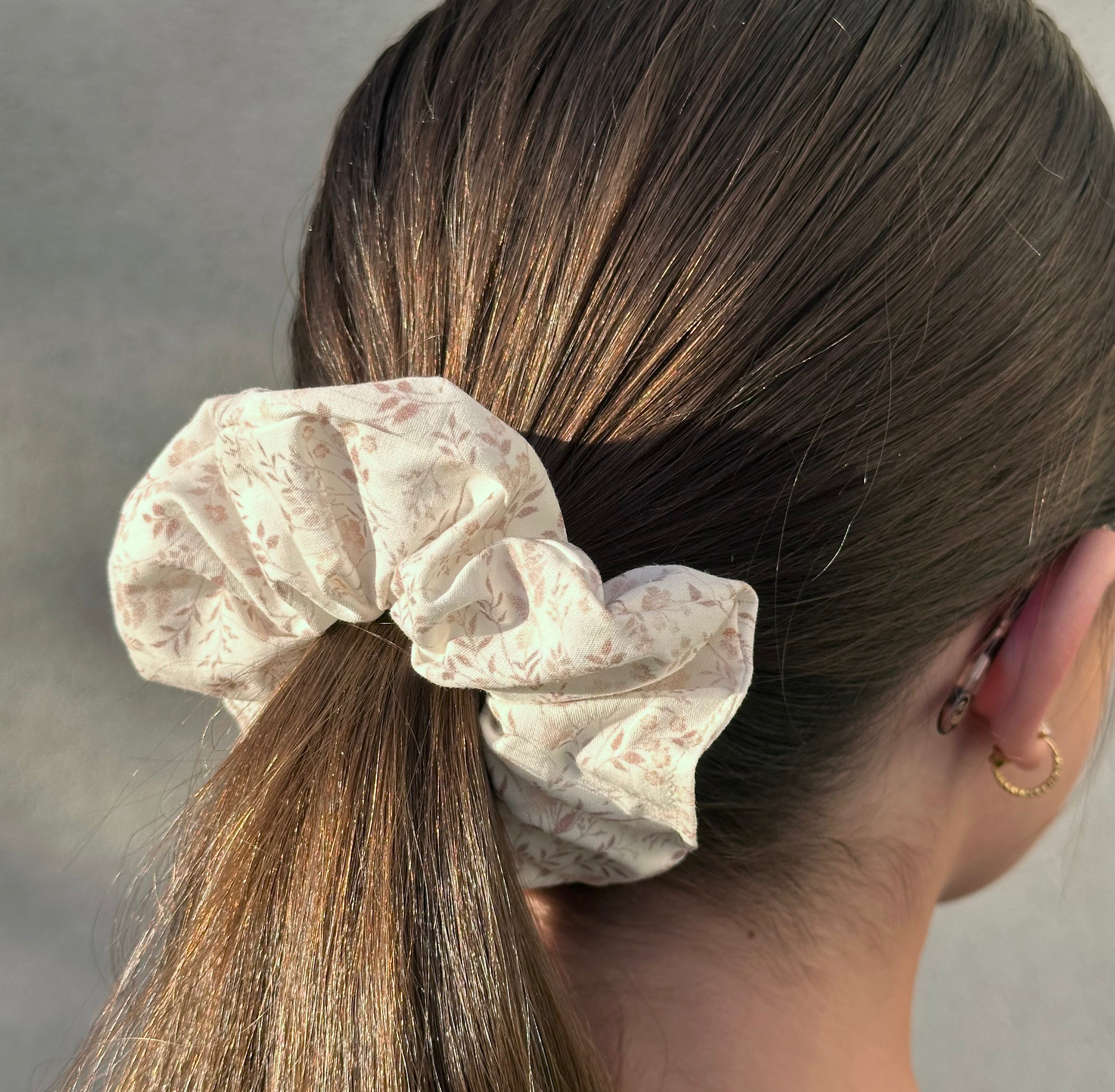 Apportez une note de poésie à votre coiffure avec ce chouchou fleuri fait main, cousu dans un tissu plein de douceur et de délicatesse. Un accessoire intemporel pour sublimer vos cheveux en toute simplicité.